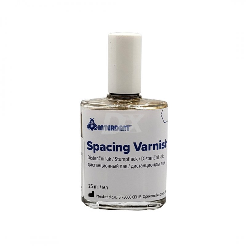 • Спеціальний лак для індивідуальної моделі, стійкий до всіх ізолюючих засобів. При одноразовому нанесенні досягається товщина шару близько 8-16 мікрон, завдяки чому утворюється проміжний простір для цементування коронок та мостоподібних протезів. Дистанційний лак дуже швидко висихає, твердий та стійкий до механічних впливів. Ідеальний для використання при моделюванні занурювальним методом або за допомогою адаптів.