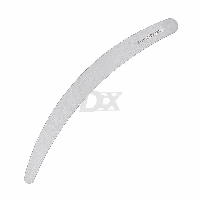 - Вигнута форма із закругленими кінцями різного діаметру дозволяє з легкістю обробляти важкодоступні ділянки нігтьової пластини, а ідеально відшліфована поверхня з лазерними насічками та діамантовою крихтою запилювати нігті в будь-якому напрямку без мікротріщин і розшаровування.