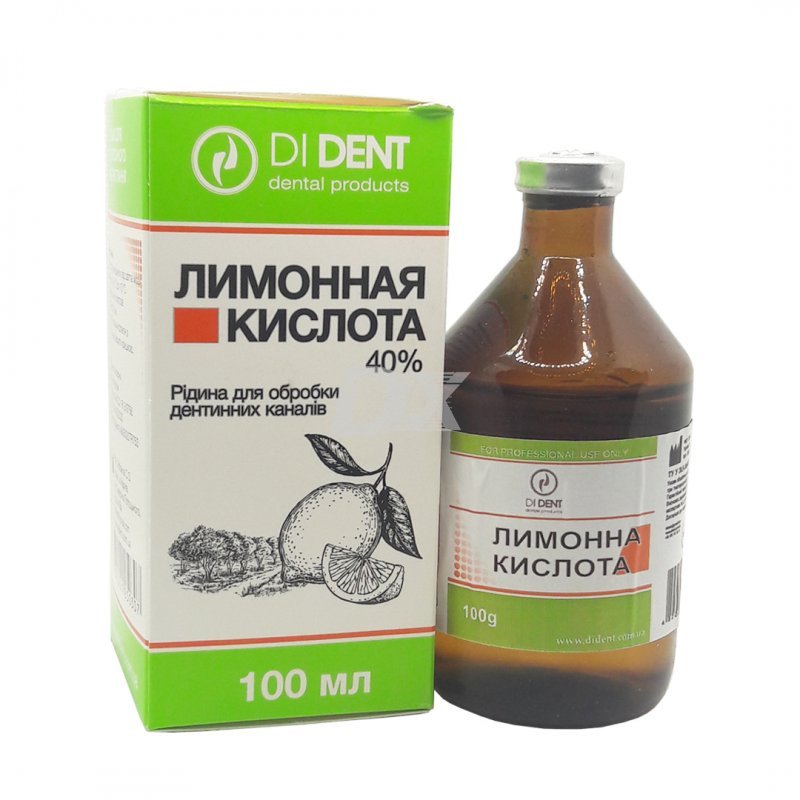 - Лимонна кислота 40% усуває змащений шар, який виник в процесі механічної розробки каналу. Це дозволяє відкрити дентинні канальці, ретельно очистити їх всередині від залишків пульпи, а потім - сприяє кращому проникненню герметика.