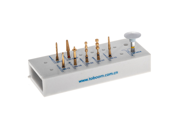 - унікальний набір позолочених, посилених борів для препарування зубів під керамічні вініри;