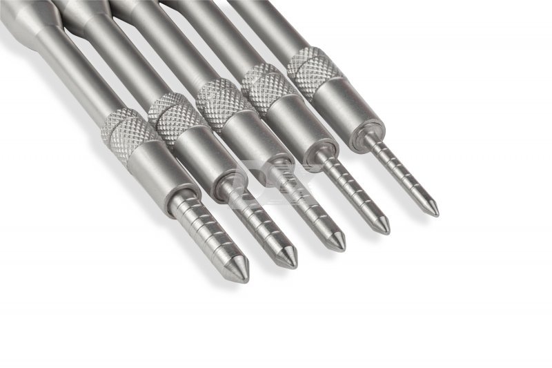 - За допомогою основної частини замку (більша частина) виставляється робоча глибина на остеотомі, додаткова частина (маленька частина) фіксує основну частину до упору.