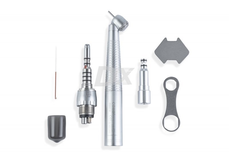 Наконечник турбінний COXO CX207-G з фіброоптикою, швидкознімним з'єднанням (multiflex), стандарт Kavo (швидкознімний перехідник можна з'єднати з наконечниками Kavo), сталевими підшипниками, потрійним розпилювачем води та повітря, виробництва COXO.