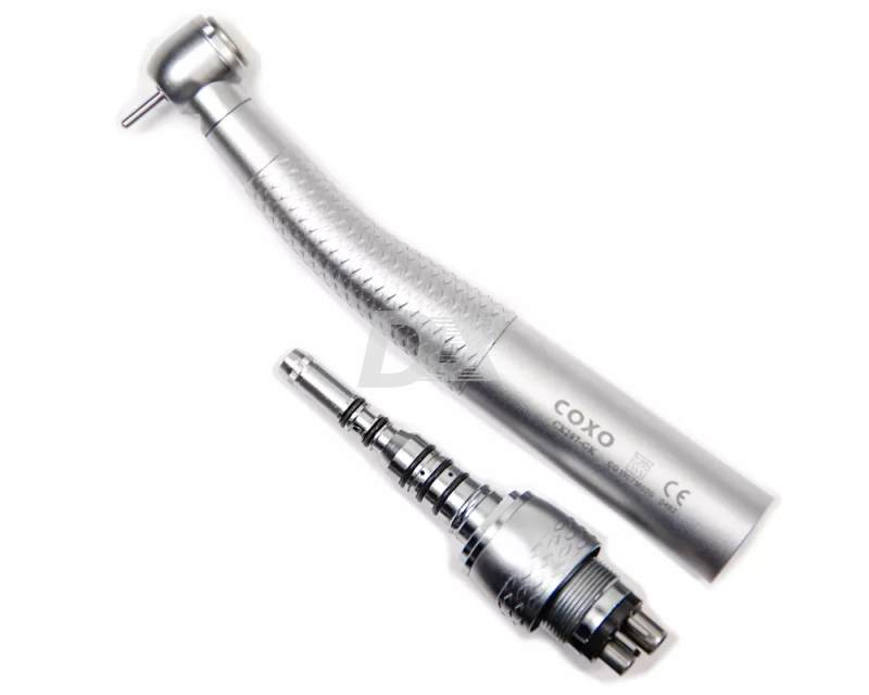 Наконечник турбінний COXO CX207-G з фиброоптикой, швидкознімним з'єднанням (multiflex), стандарт Kavo (швидкознімний перехідник можна з'єднати з наконечниками Kavo), сталевими підшипниками, потрійним розпилювачем води і повітря, виробництва COXO