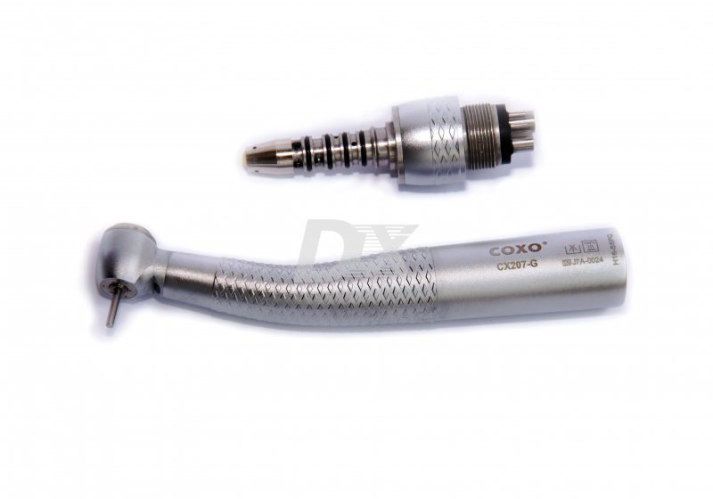 Наконечник турбінний COXO CX207-G з фиброоптикой, швидкознімним з'єднанням (multiflex), стандарт Sirona (швидкознімний перехідник можна з'єднати з наконечниками Sirona), сталевими підшипниками, потрійним розпилювачем води і повітря, виробництва COXO