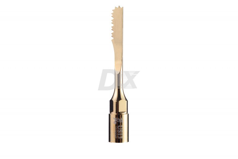 • Насадка з нітрид-титановим напиленням, призначена для високоефективної резекції верхівки кореня в області третього моляра.
