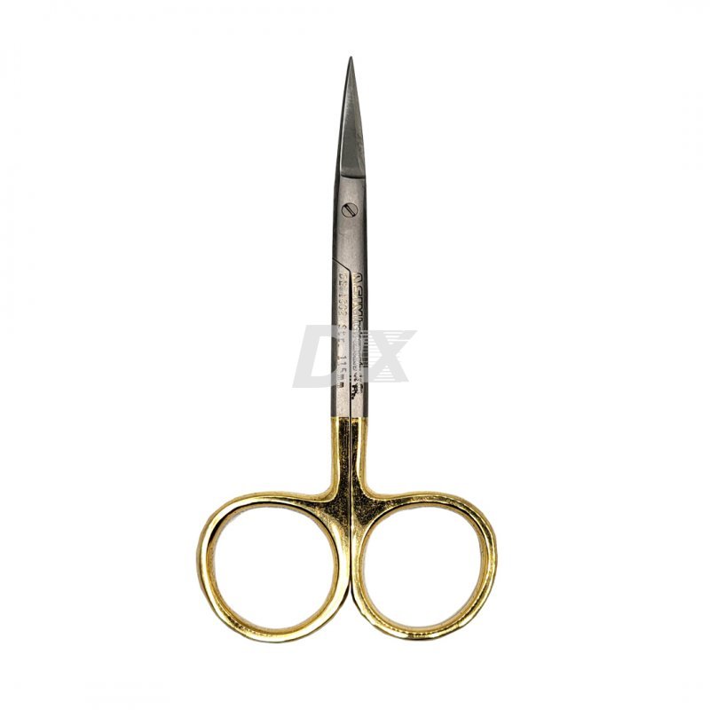 • Хірургічні ножиці з гострими прямими кінцями, що застосовуються в стоматології для делікатних маніпуляцій на яснах.