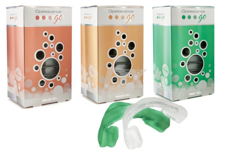 - Тоненька капа Opalescence Go заздалегідь заповнена гелем: інтенсивним 10% або 15% гелем перекису водню для відбілювання. Гель в'язкий, що перешкоджає витіканню його з капи. Тоненька, прозора й гнучка капа Opalescence Go стає практично непомітною в процесі використання.