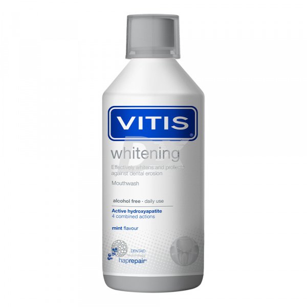 - Завдяки своїй унікальній комбінованій формулі зубна паста та ополіскувач VITIS WHITENING (ВІТІС ВАЙТЕНІН) ефективно відбілюють зуби, відновлюючи їх натуральну білизну та яскравість. Водночас вони жодним чином не ушкоджують тканини зубів, навіть більше — зміцнюють емаль і запобігають виникненню чутливості.