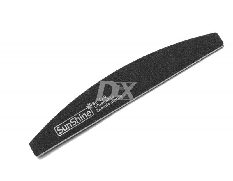 - Пилка для нігтів SUNshine чорна арочної форми – бік з абразивністю 80 використовується для роботи тільки зі штучними нігтями для обпилювання бічних сторін, вільного краю для надання правильної форми нігтя. Бік з абразивністю 120 використовується для обробки натуральних нігтів.