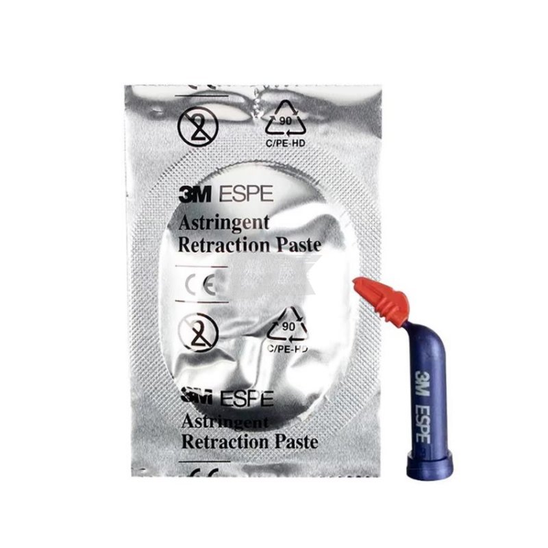 - ESPE Astringent Retraction Paste - ретракційна кровоспинна паста для тимчасової ретракції маргінальних ясен, забезпечує суху ясенну борозну при здоровому пародонті та довготривалий гемостаз. Горизонтальна та вертикальна ретракція ясен досягається за рахунок механічного впливу щільної пасти на стінки ясенної борозни та хімічного впливу вазоконстриктору - хлориду алюмінію (15%). Запатентований екстра-тонкий носик капсули забезпечує легкий та атравматичний доступ, паста ефективно розкриває ясенну борозну.