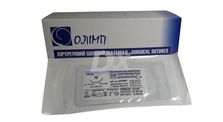 Хiрургiчний шовний матеріал Полігліколід PGA плетений 75 см, 3/0 фіолетовий.