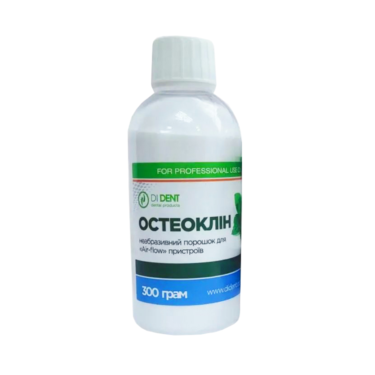 • Порошок для содоструминних апаратів Остеоклін — це порошок бікарбонату натрію білого кольору з розміром гранул 40-60 мкм