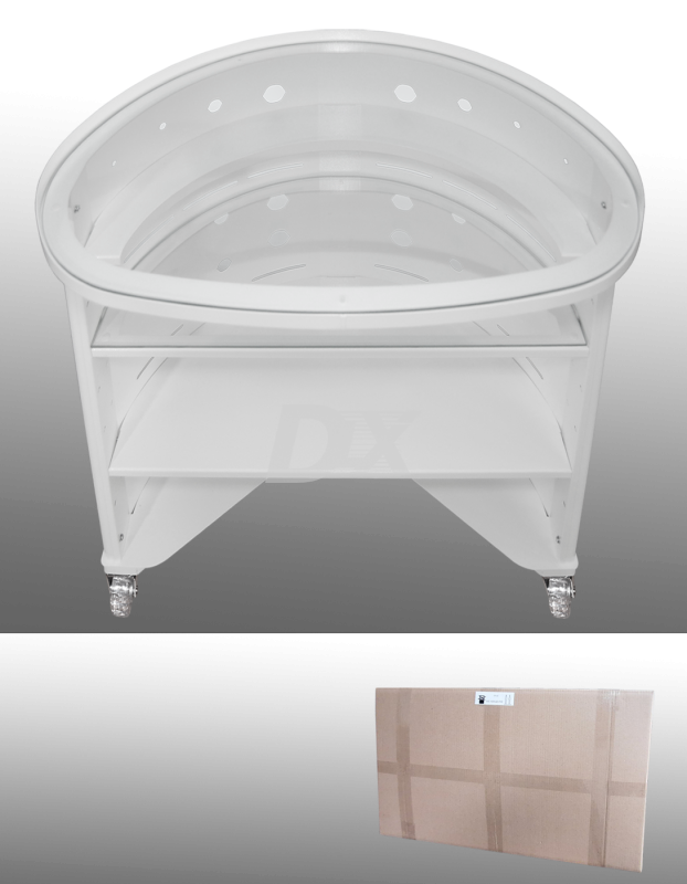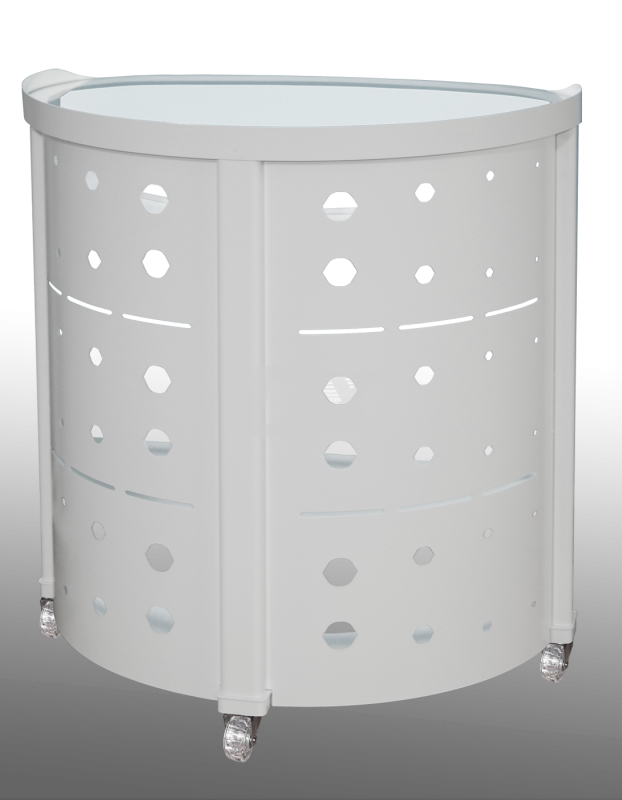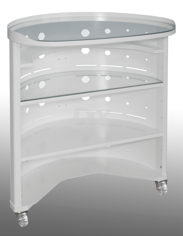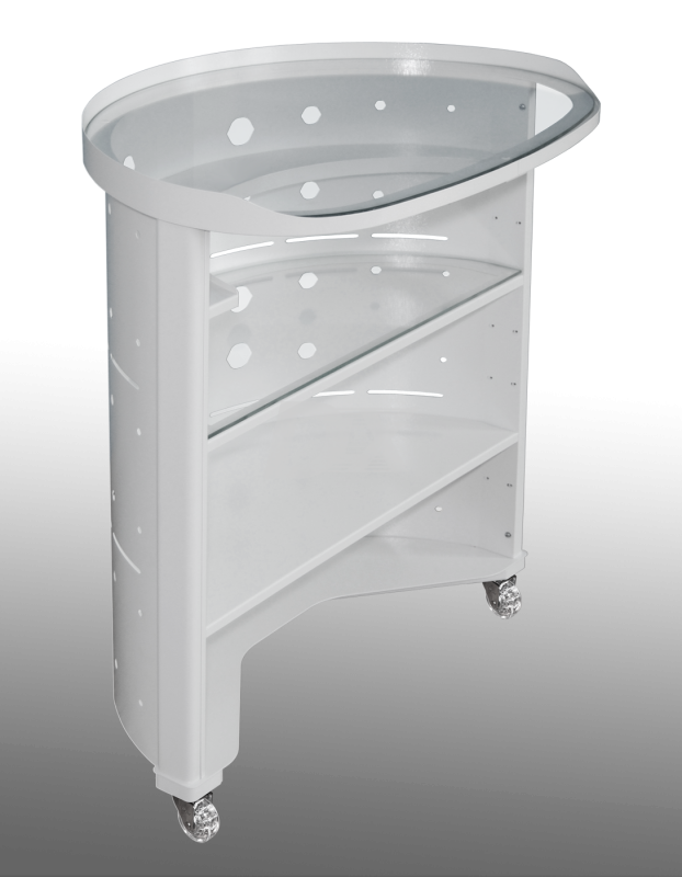 Стіл овальний Oval, для інструментарію та витратних матеріалів. Повністю розбірна конструкція, кількість полиць 4, дві з яких зі склом. Всі полиці, крім верхньої, можна переставляти (змінювати) у будь-якому зручному для себе порядку. Стіл виконаний з металу різних товщин, за рахунок цього досягається максимальна міцність столу. У цій конструкції використані ролики для твердої підлоги, скло - товщиною 5 мм. Стіл пофарбований порошковою (полімерною) фарбою (9016Ral). Модель повністю розбірна, вона займатиме менше місця під час транспортування. Є можливість встановлення роликів з гальмами.