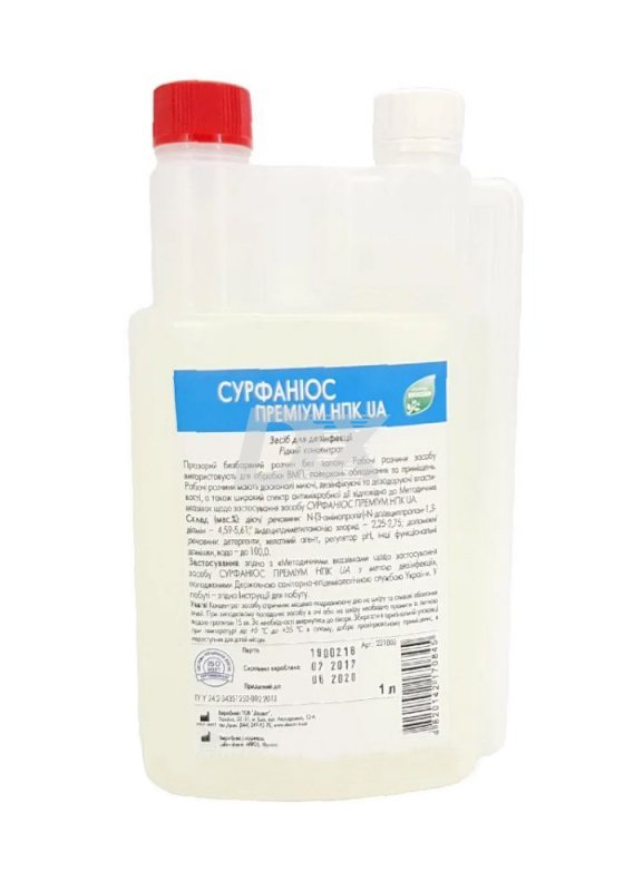 - Сурфаніос преміум - це засіб для ефективної дезінфекції та глибокого очищення поверхонь і виробів медичного призначення, дезінфекції, в т.ч. суміщеної з очищенням і стерилізації інструментів.