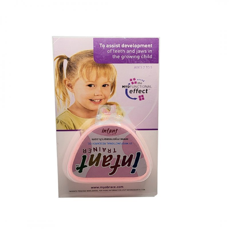 - Дія трейнера Infant для дітей від 2 до 5 років направлена на стимуляцію розвитку зубо-щелепної системи. Використання апарату Infant допомагає дитині перейти на нормальний носовий тип дихання і вчить язик займати правильне положення під час ковтання. Дослідження довели, що нормальний розвиток зубощелепно-лицьових систем безпосередньо залежить від цих чинників. Трейнер Infant позбавить пацієнта в подальшому від необхідності ортодонтичного лікування на брекет-системі або видалення зубів.