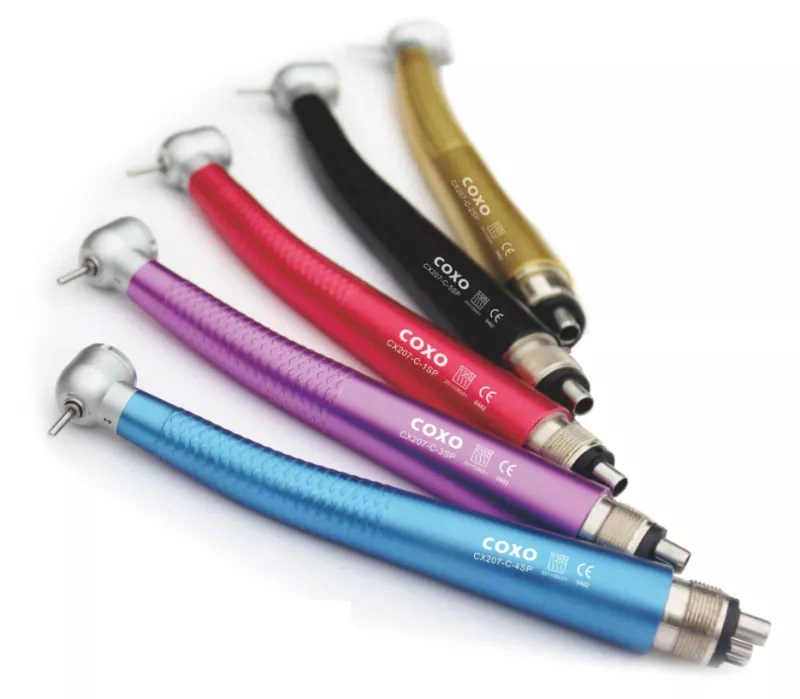 Стоматологічний турбінний наконечник CX207-C з керамічними підшипниками, одиночним розпилювачем води та потрійним розпилювачем повітря, виробництва COXO.