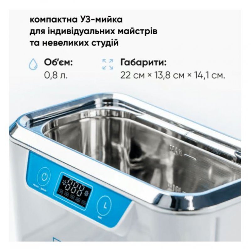 - Потужна – має два УЗ-випромінювача, що забезпечують ідеальну очистку інструментів