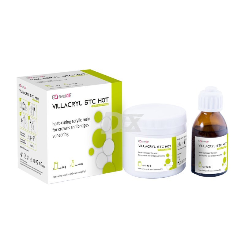- Villacryl STC HOT – це полімерний матеріал гарячого затвердіння, призначений для облицювання коронок та мостоподібних протезів.