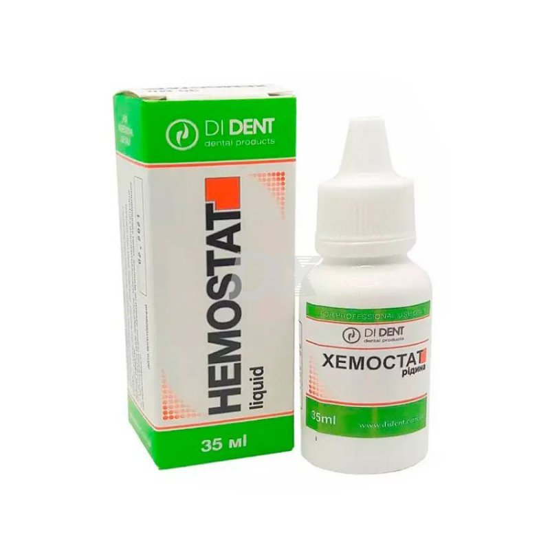 - Хемостат форте рідину містять як основний компонент хлорид алюмінію 6-ти водний та хлорид заліза (III) 6-ти водне забезпечує ефективний та швидкий гемостаз.